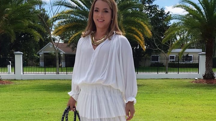 Y es que, en dicha foto, la puertorriqueña presumió un outfit que es un mini vestido blanco tableado y que tiene olanes, unas plataformas blancas carístimas de París de Cristian Loboutin y unos collares de color dorado con lo que le dio ese toque elegante y fancy a su estilo.